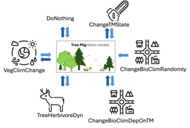 Walddynamik ist nicht vollkommen autonom, sondern wird von äusseren Faktoren beeinflusst und beeinflusst wiederum andere Systeme. Wenn diese Einflüsse in beide Richtungen gehen, sollten in Simulationen andere dynamische Modelle für die externen Faktoren mit TreeMig gekoppelt werden.